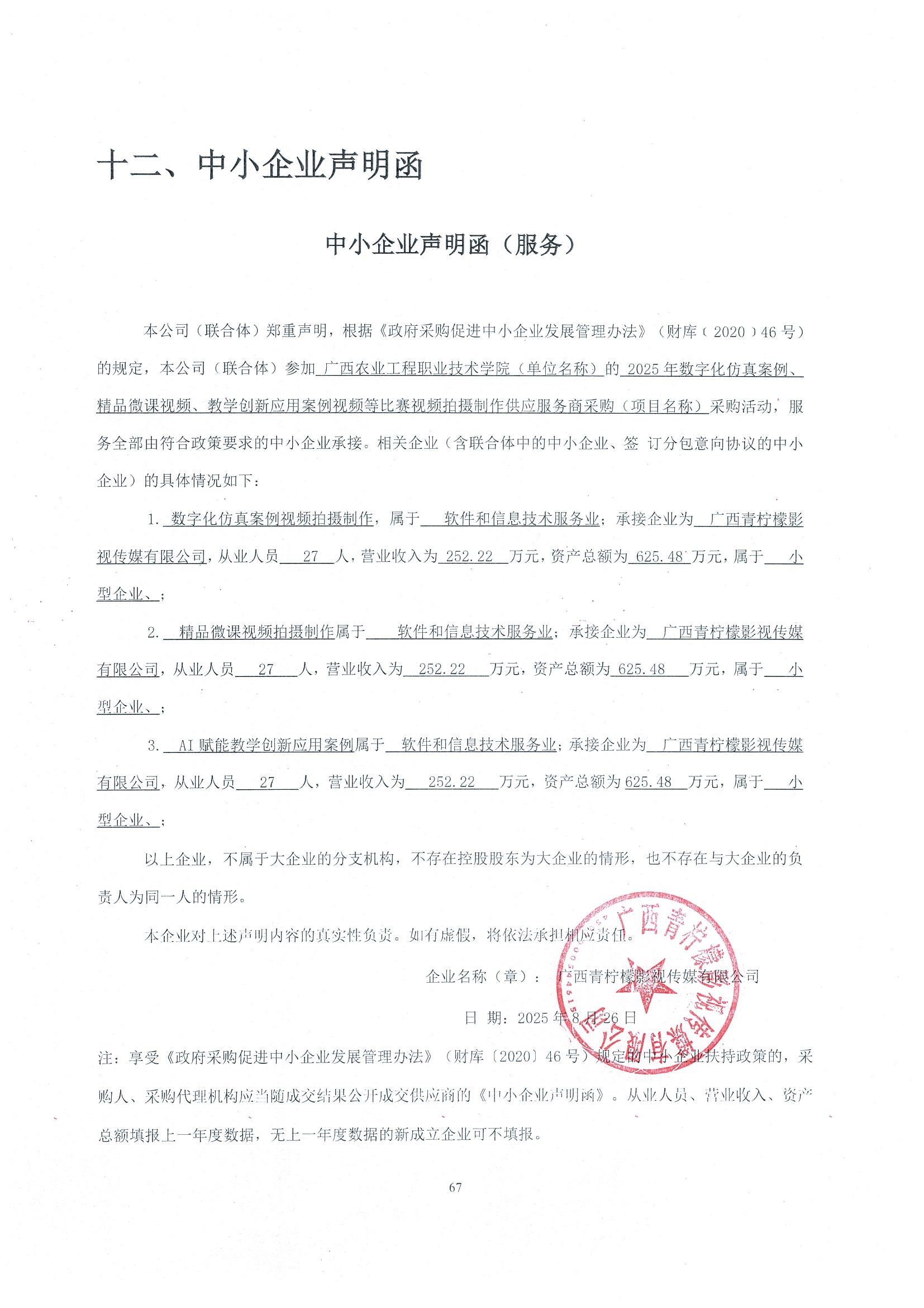1.供应商名称:广西青柠檬影视传媒有限公司