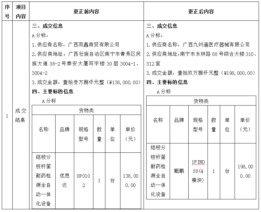 广西国力招标有限公司关于2025年实验设备采购(八)(GXGL2025M-J376-Z)的成交结果更正公告